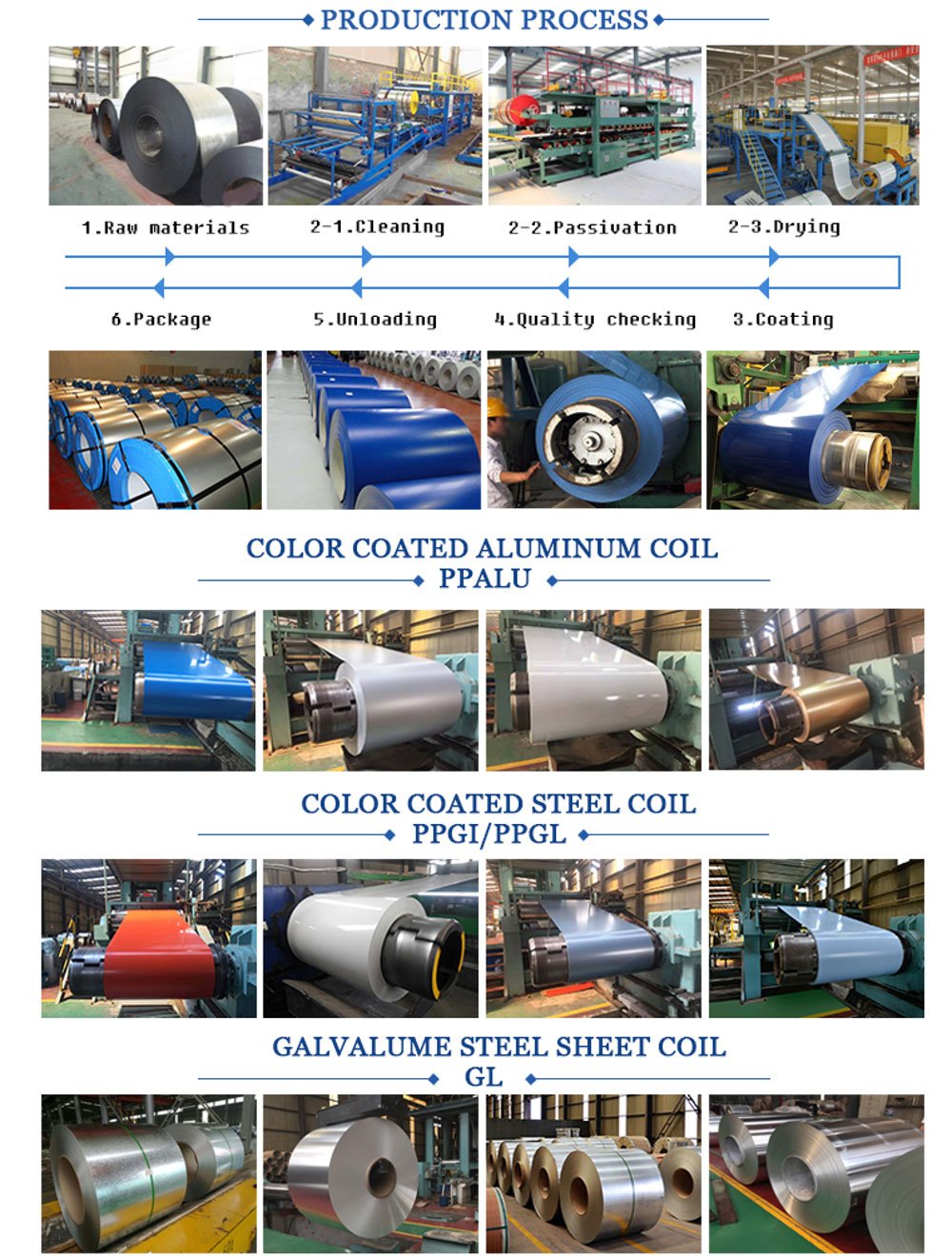 Production Process: Uncoiling-degreasing-washing-passivation-drying-cooling-painting-drying and curing-cooling