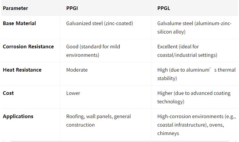 • Aesthetic Flexibility: Both materials offer vibrant paint finishes, but PPGL’s smoother alloy surface enhances paint adhesion, reducing peeling risks over time.